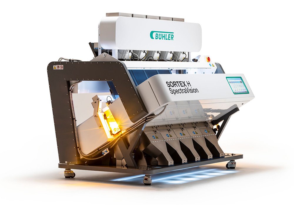 Nuestra nueva SORTEX H SpectraVision ha sido el resultado de 75 años de amplia experiencia en clasificación óptica, trayendo multiples nuevos beneficios a nuestros clientes. Una clasificadora óptica completamente nueva que ofrece hasta un 50 % más de concentración de rechazos y niveles de remocion de defectos sin precedentes. Gracias al novedoso sistema Bühler Insights, ud podra controlar y observar en tiempo real el rendimiento de su máquina desde cualquier parte del mundo, en línea con los estándares de la Industria 4.0.